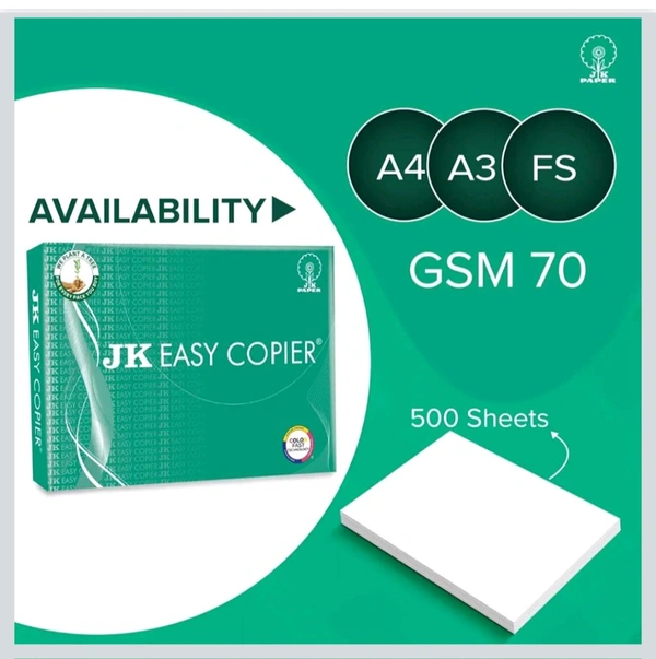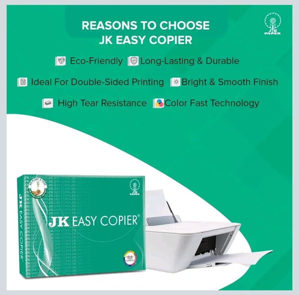 JK Easy Copier Paper | A4 Size | 70 GSM | 500 Sheets | White Paper, 1 Ream | For Laserjet & Inkjet Printer | Fast Drying | Both Side Print | Eco Friendly | ColorLok (Pack of 1) | One